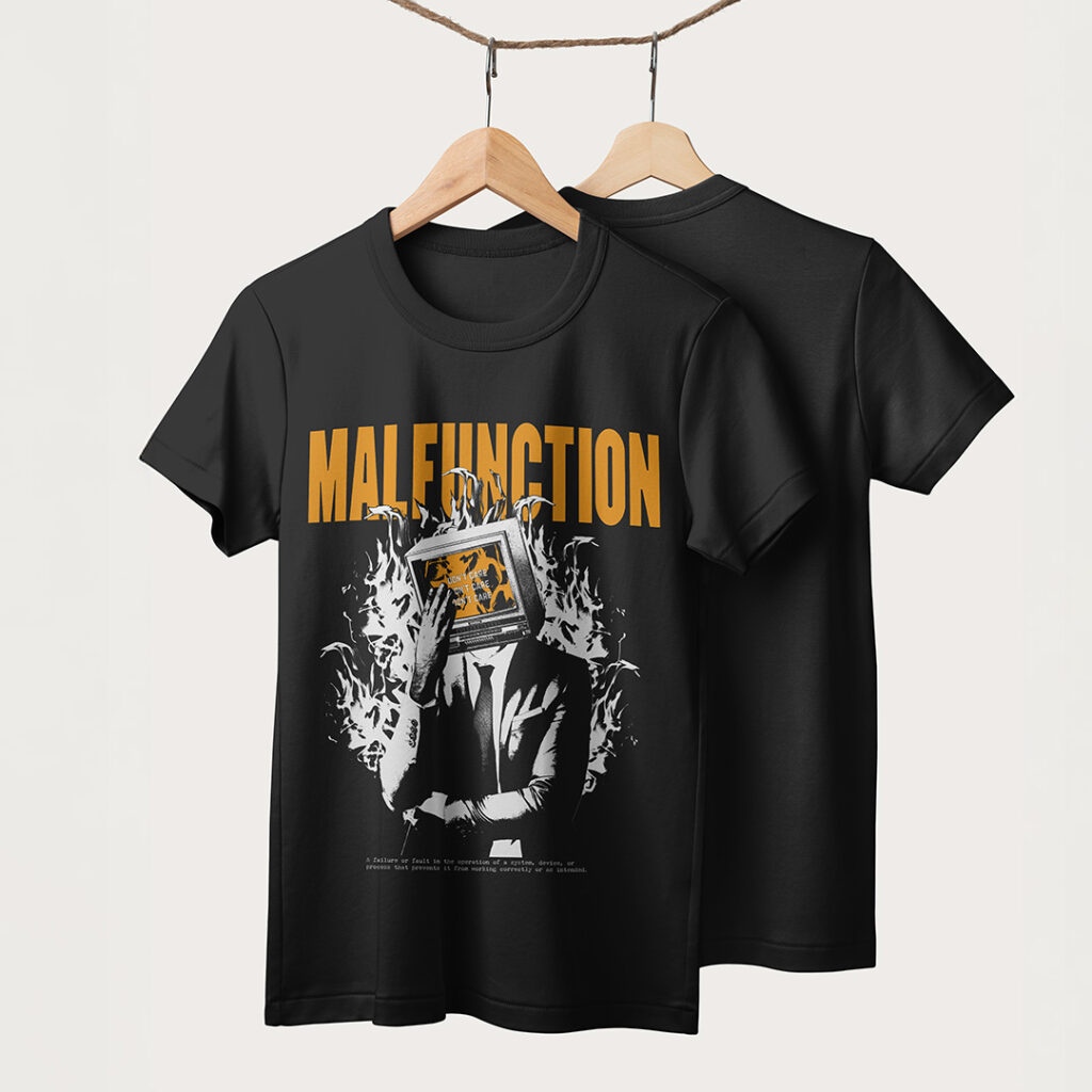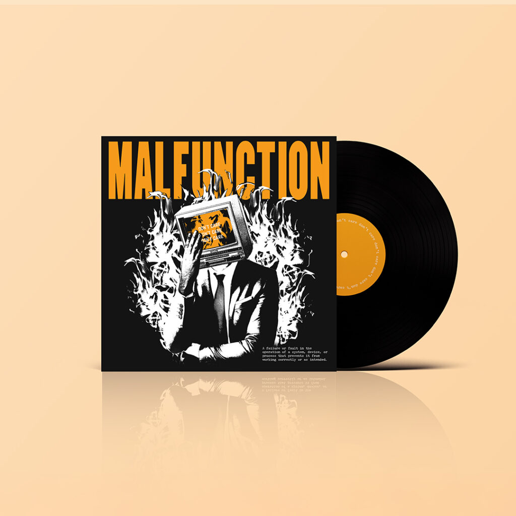 Für die Salzkammergut-basierte Grunge/Hard-Rock-Band Malfunction entstand ein Artwork, das sowohl als Album-Cover als auch als T-Shirt-Motiv dient. Inspiriert von der kompromisslosen Energie der Band, geprägt durch Einflüsse von Nirvana, Queens of the Stone Age und Alice in Chains, verbindet das Design rohe Ausdruckskraft mit einer klaren Botschaft. Das Ergebnis ist ein visuell kraftvolles Statement, das zur musikalischen Wucht von Malfunction passt – roh, direkt und unübersehbar.